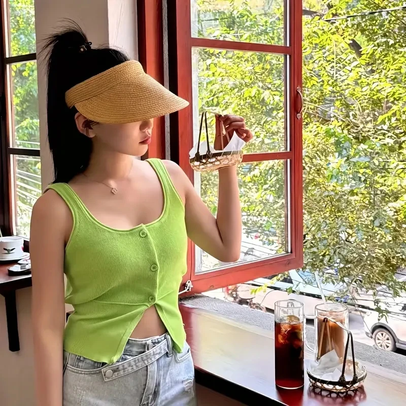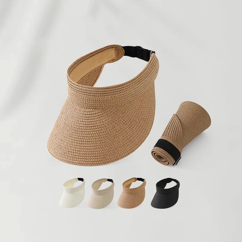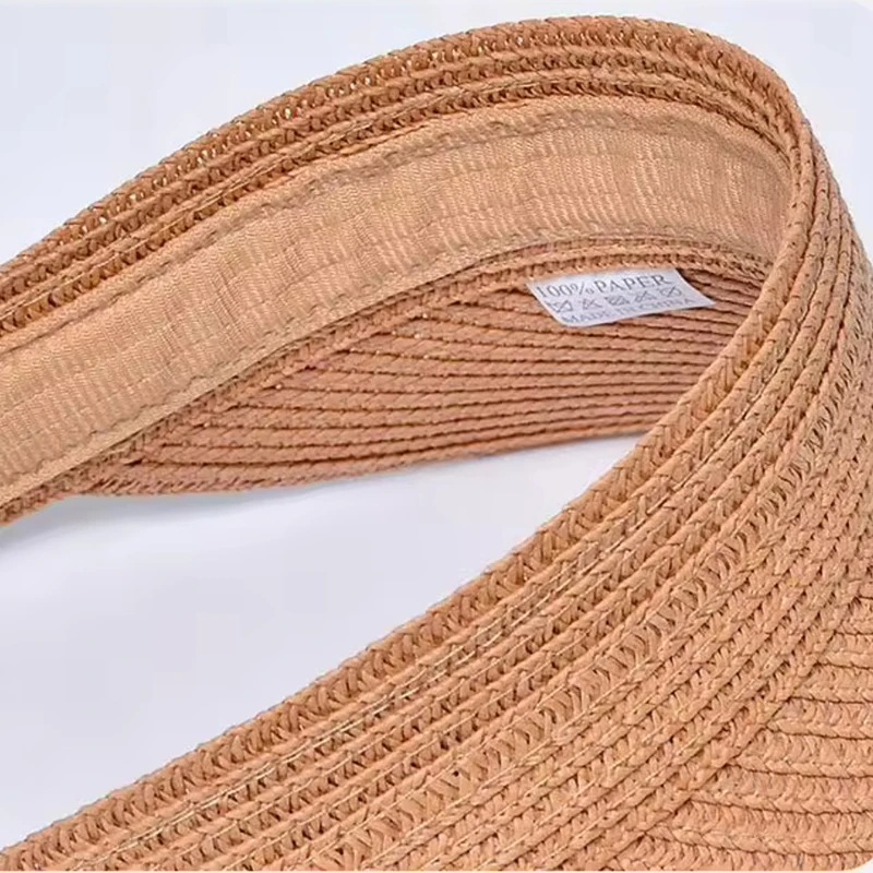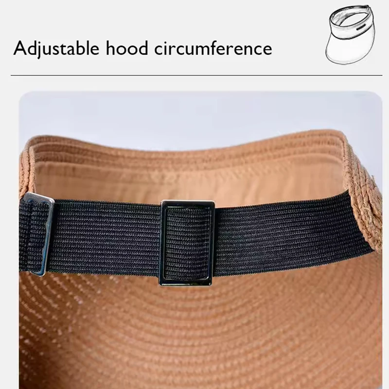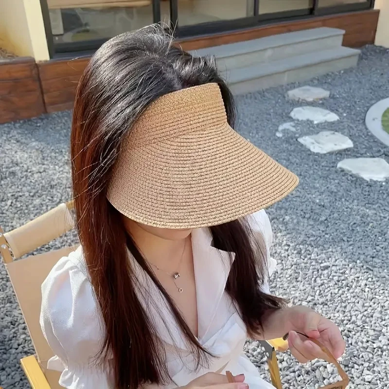 Women Summer Straw Visor Hat Breathable Wide Brim Sun Cap Golf Beach Foldable Duck Tongue Design with Neck Protection Sun Hat - Khaki