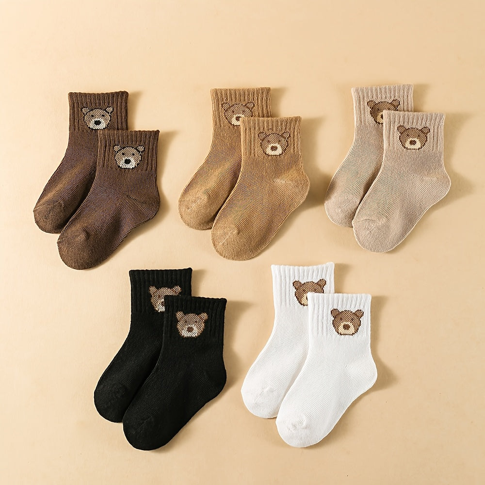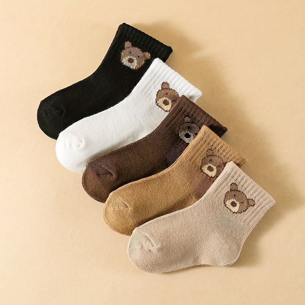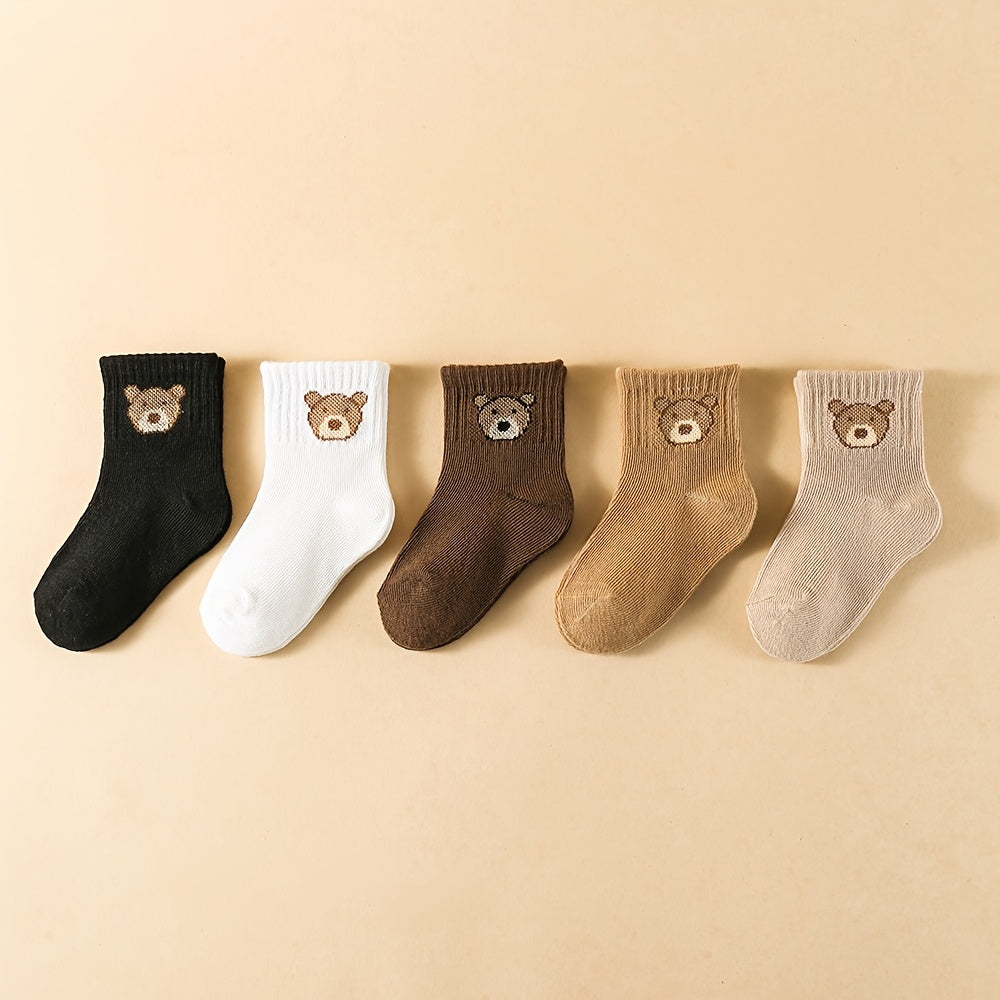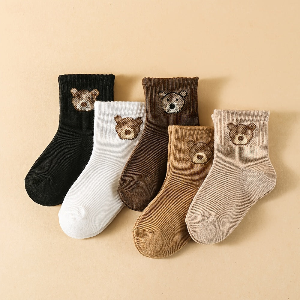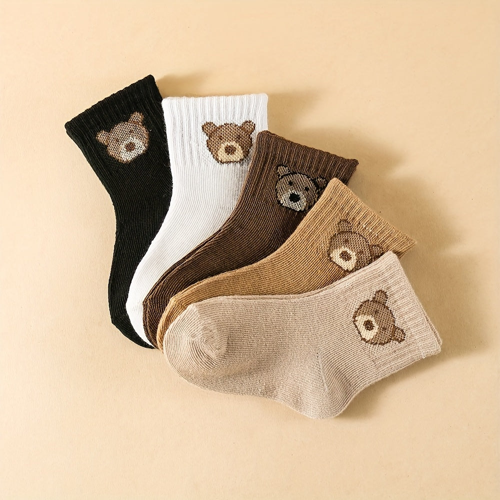 5 Pairs Cartoon Bear Youngsters Socks Comfortable and Cute Youngsters Boys' and Girls' Socks - Mixed 5 Pairs / 1-2Y