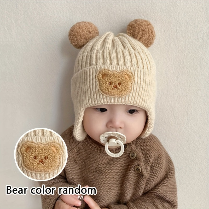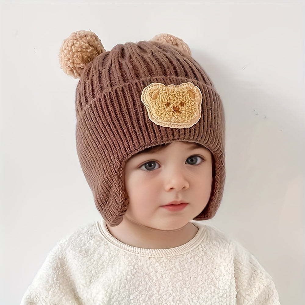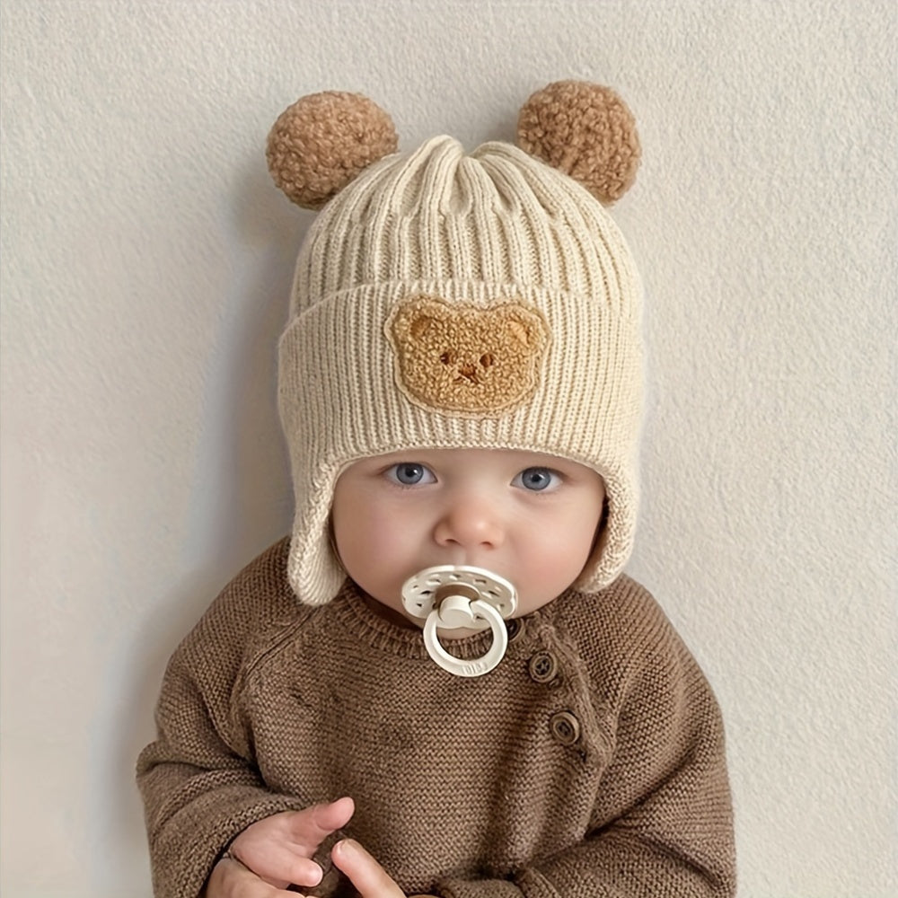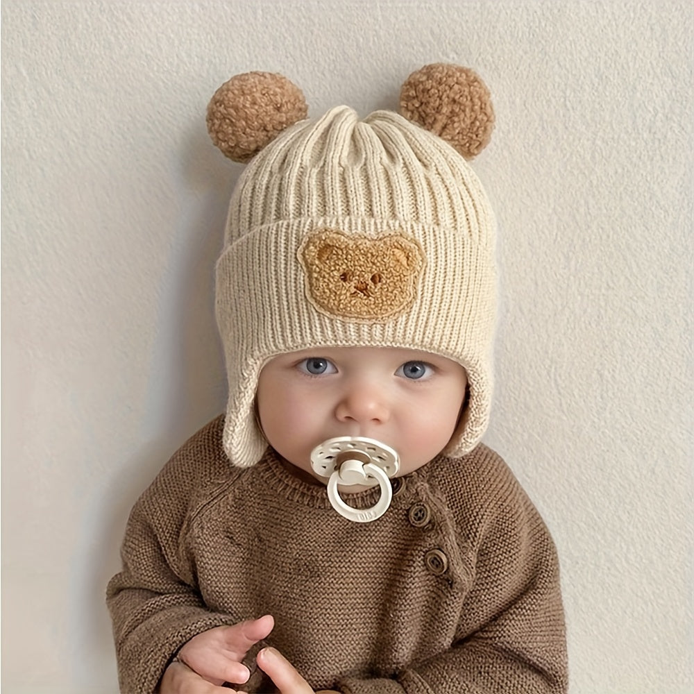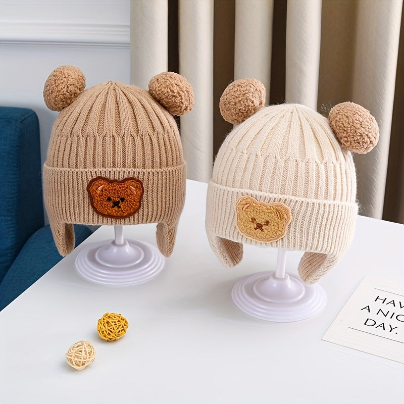 A Thick, Warm Baby Hat for Autumn And Winter, Featuring Cute Cartoon Designs for Boys And Girls. This Ear-Protecting Hat Is Perfect for Keeping Little Ones Cozy During Outdoor Activities And Is Suitable for Babies Aged 10 to 24 Months. - Bear Earmuffs Hat - Beige