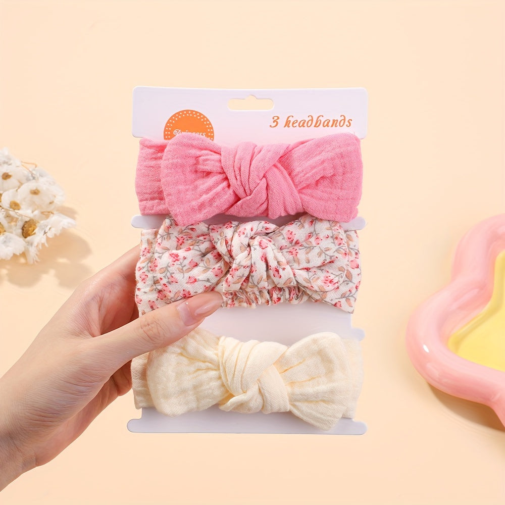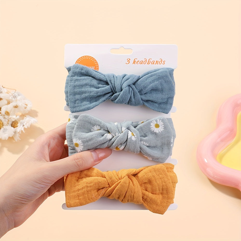 Darbiny 3pcs Cute Bunny Ear Bow Headbands for Girls - Soft Polyester, Perfect for Everyday & Casual Wear - Mixed Color 10