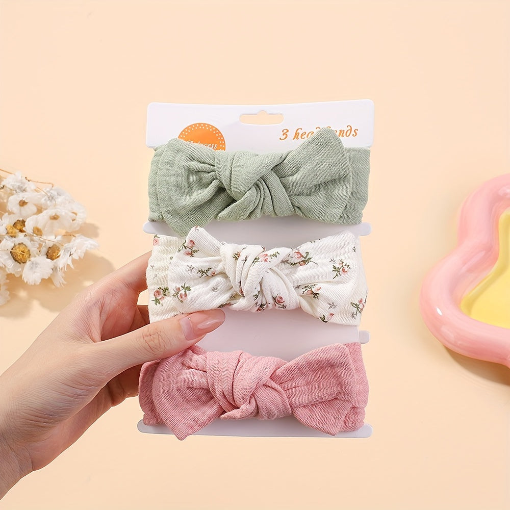 Darbiny 3pcs Cute Bunny Ear Bow Headbands for Girls - Soft Polyester, Perfect for Everyday & Casual Wear