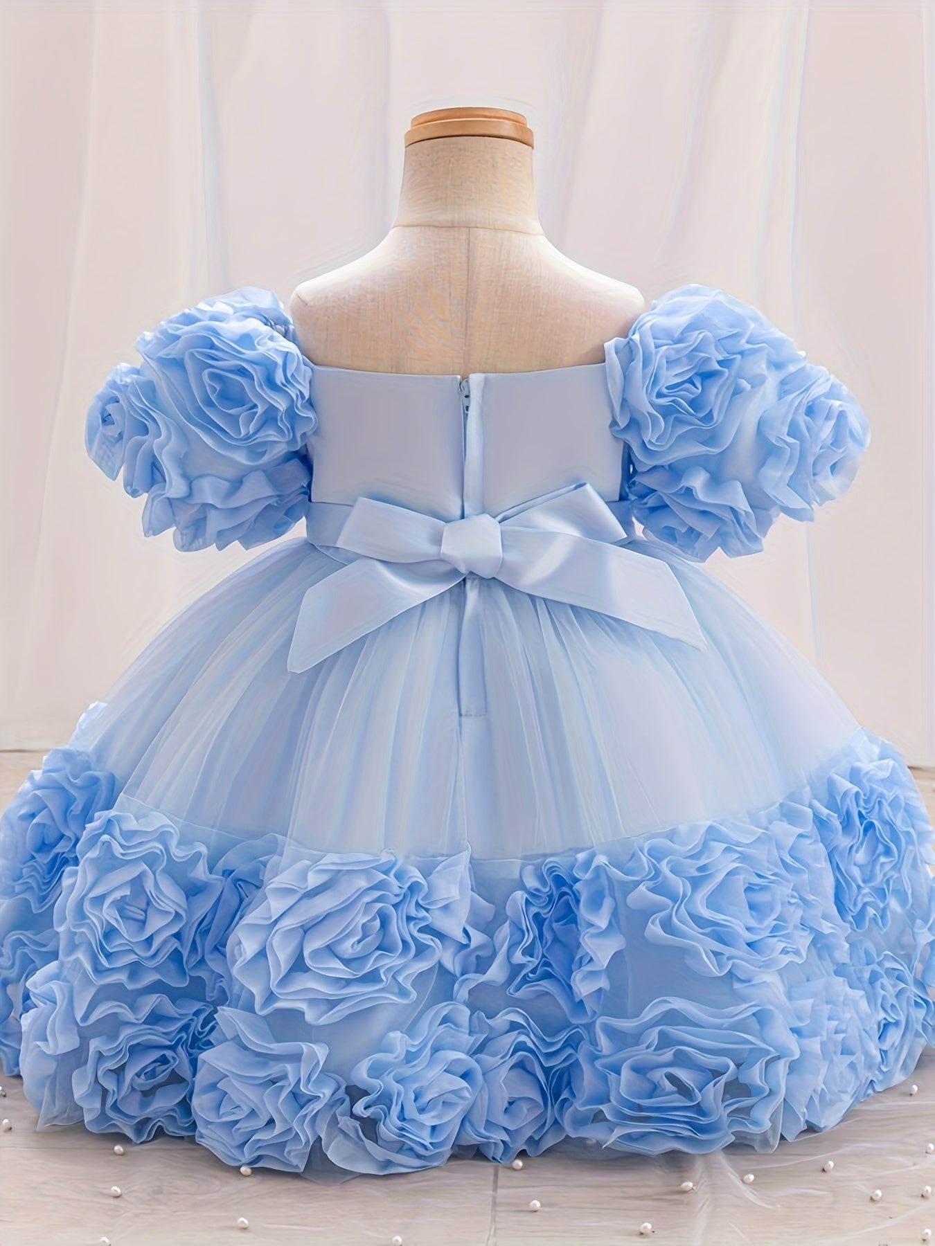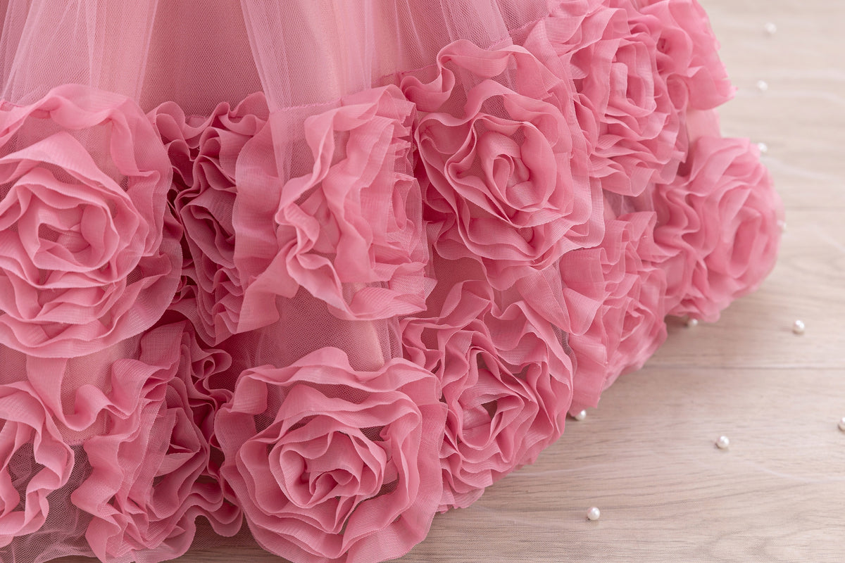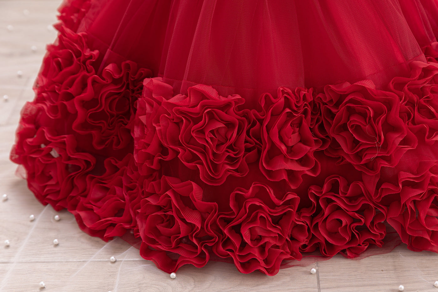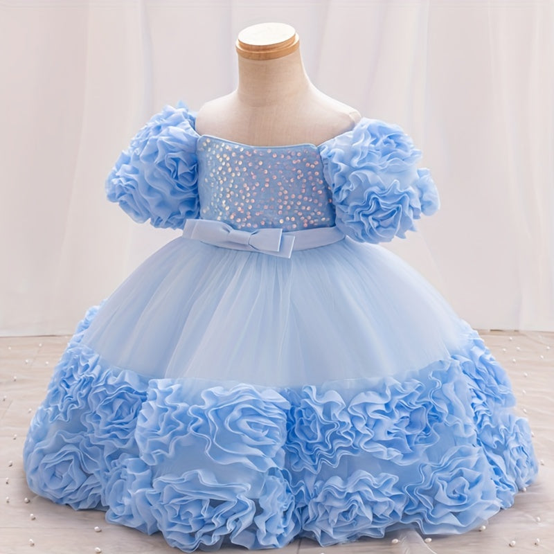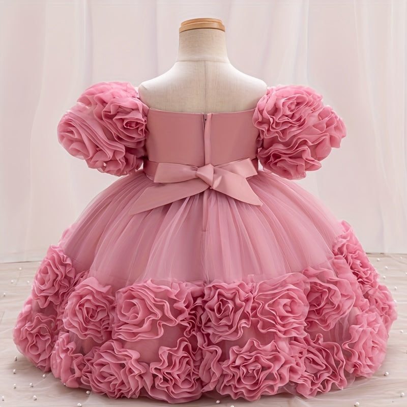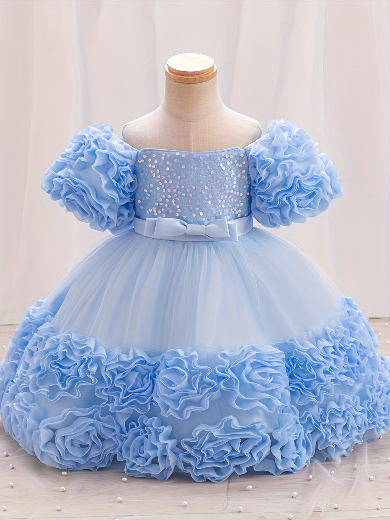 Elegant Girls' Pink Princess Dress with Sparkling Sequin Detail - Puff Sleeves, Knee-Length, Polyester & Viscose Blend, Perfect for Pageants, Hosting & Piano Performances, Princess Dresses for Girls - crimson / 9-12M