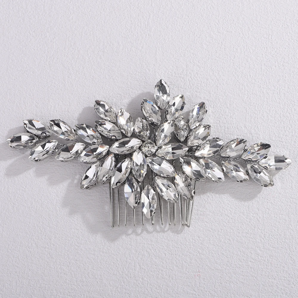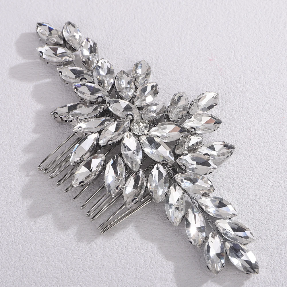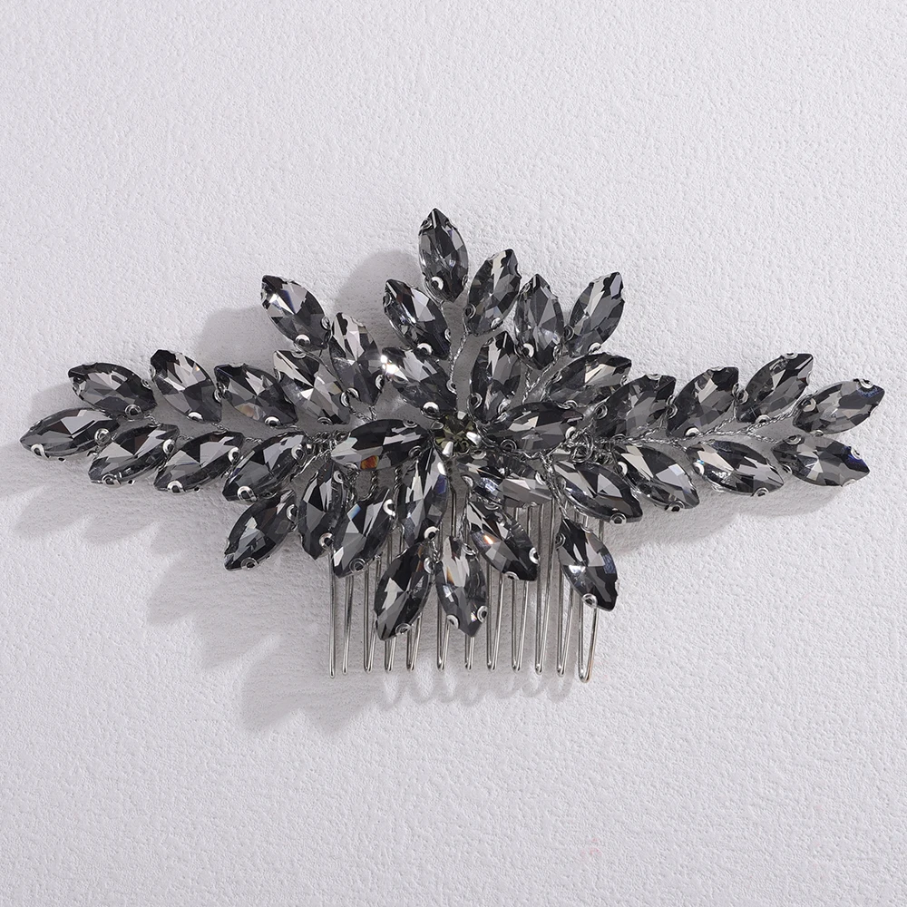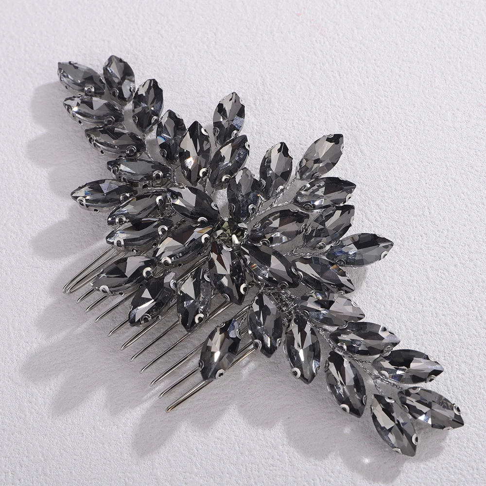 Trendy Rhinestone Bridal Bride Hair Comb Handmade Wedding Side Hair Comb Accessories Party Hair Piece for Women and Girl Jewelry - GRAY