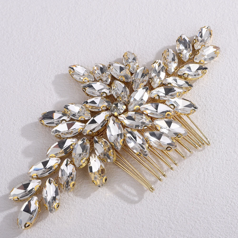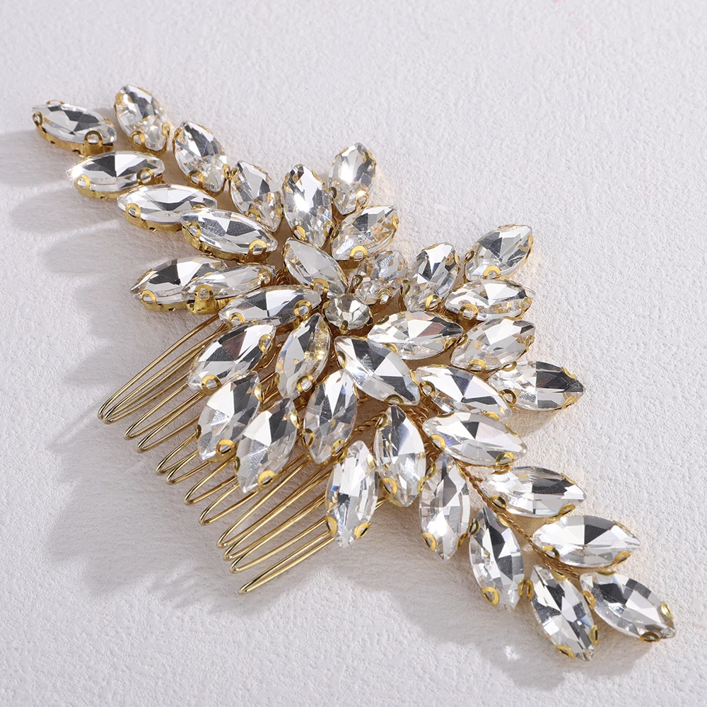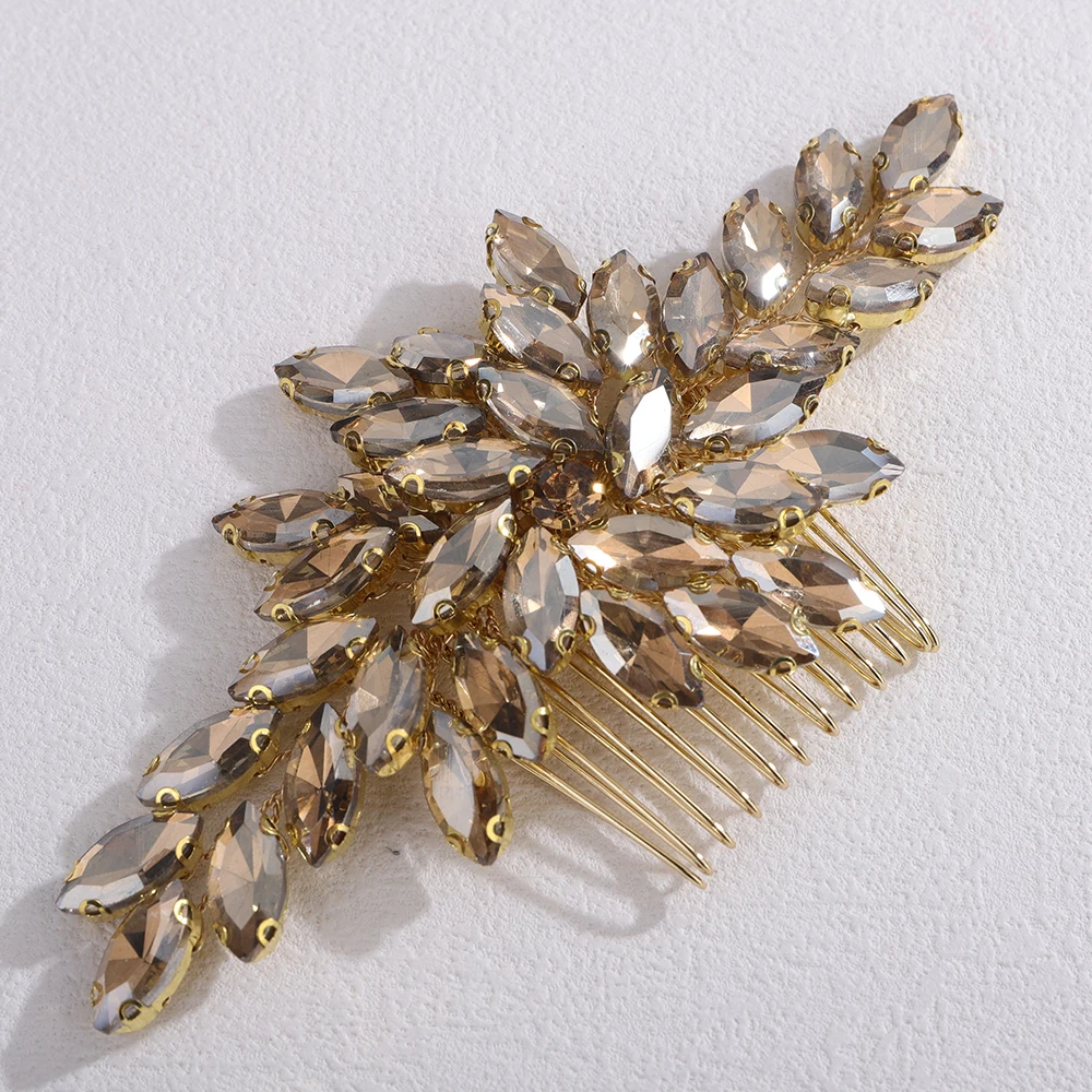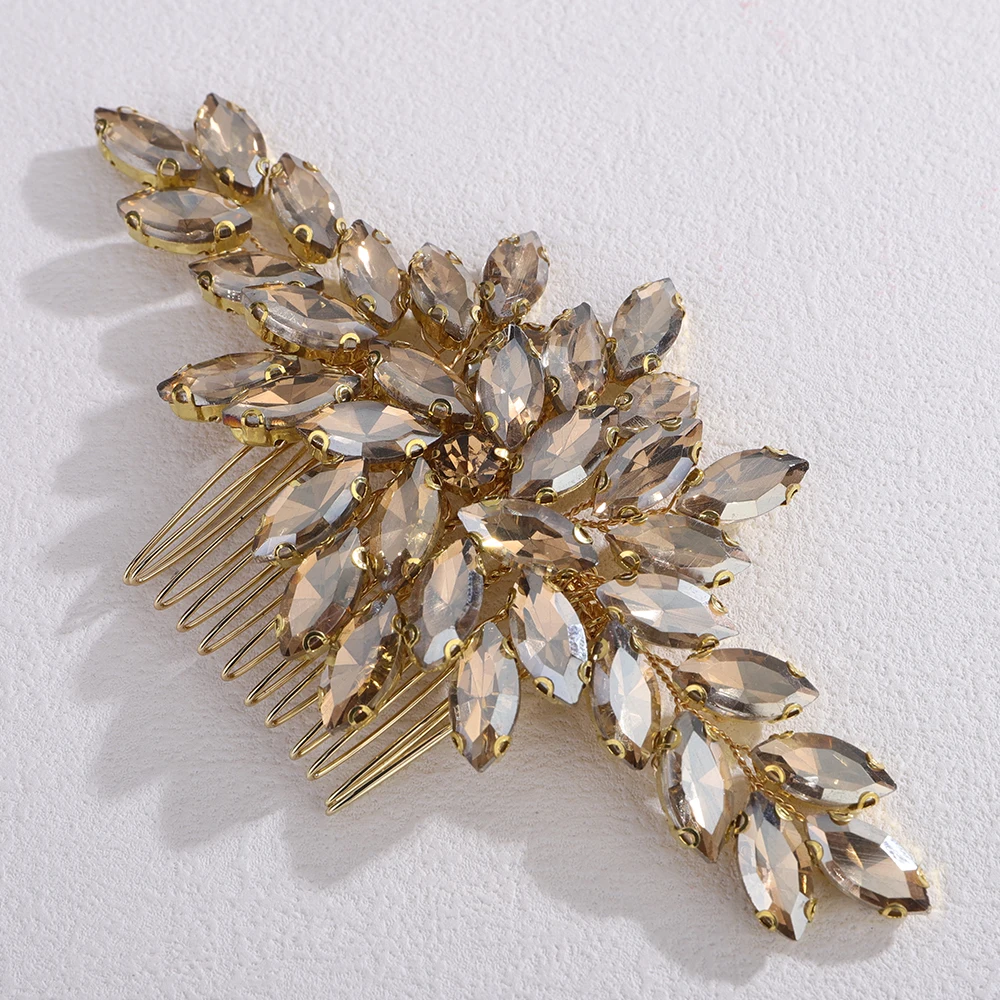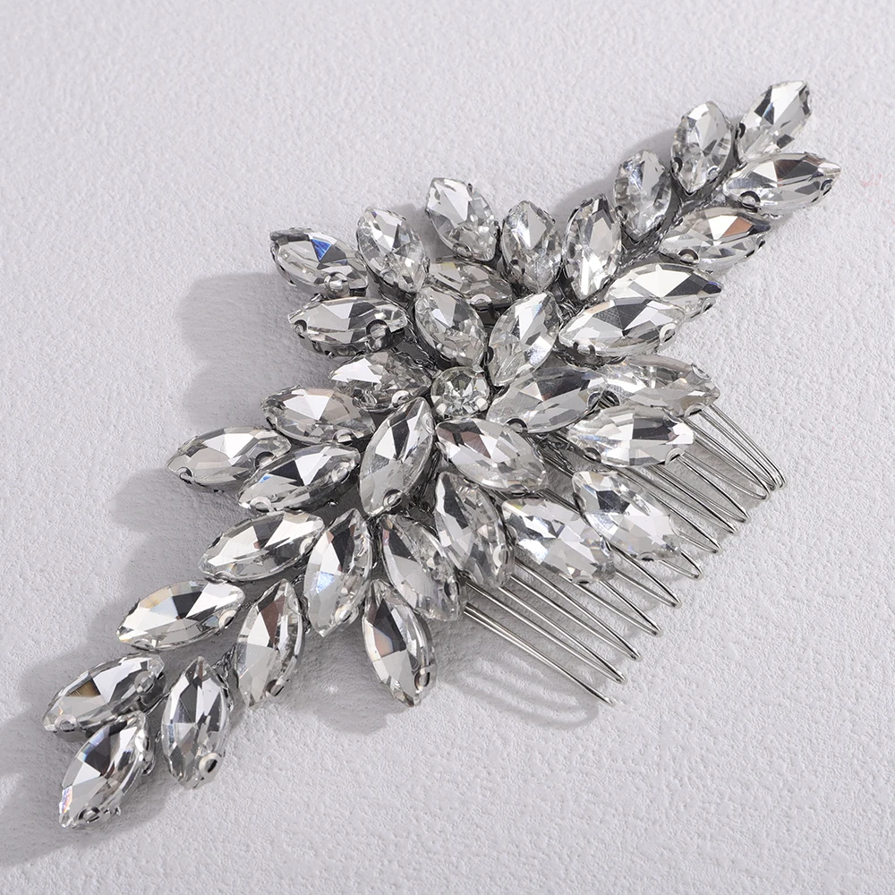 Trendy Rhinestone Bridal Bride Hair Comb Handmade Wedding Side Hair Comb Accessories Party Hair Piece for Women and Girl Jewelry - GRAY