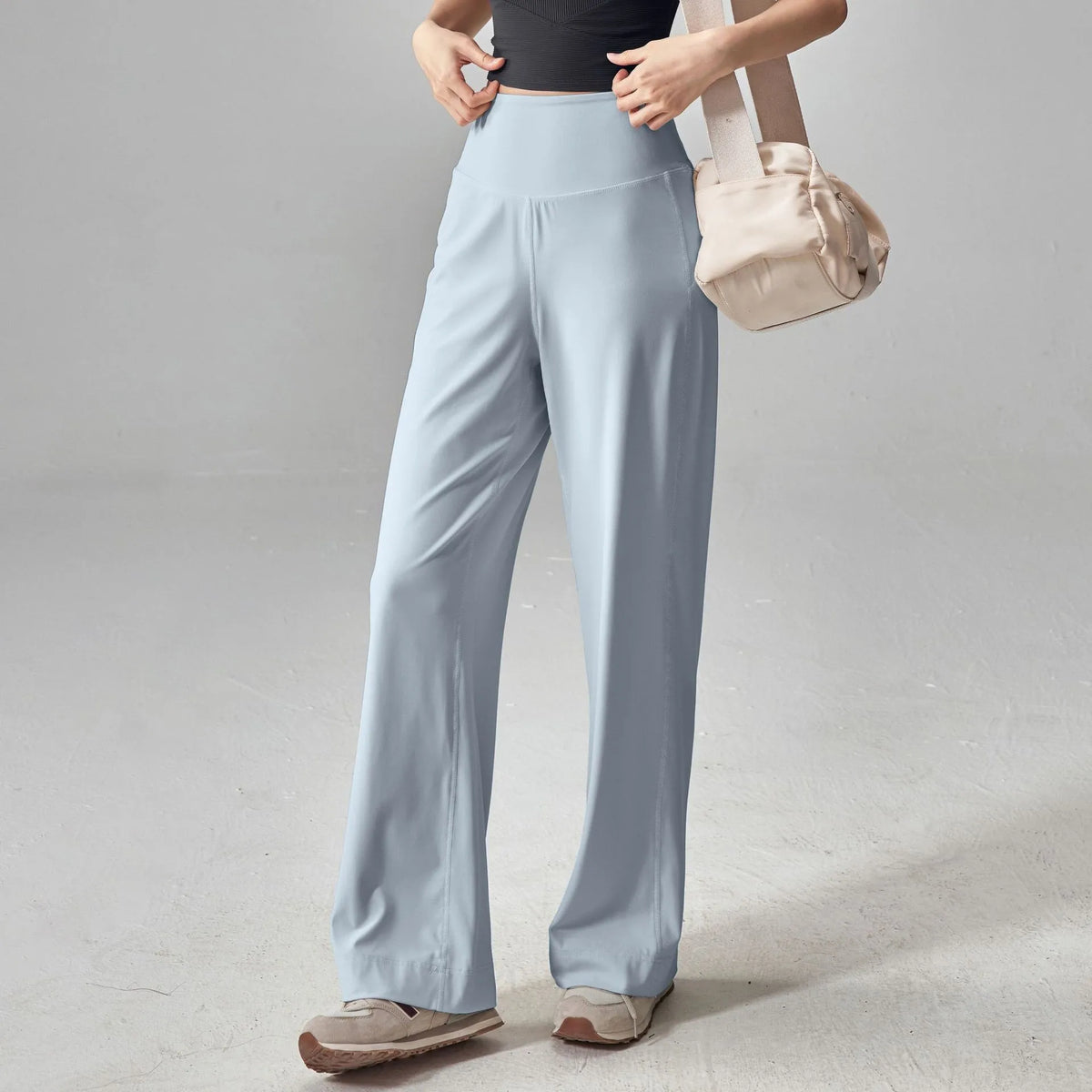 Women's High Quality Pants With Pockets High Waist Stretch Loose Sweatpants Nake-Feeling Sports Leisure Yoga Workout Pants - Army Green / L / CHINA